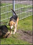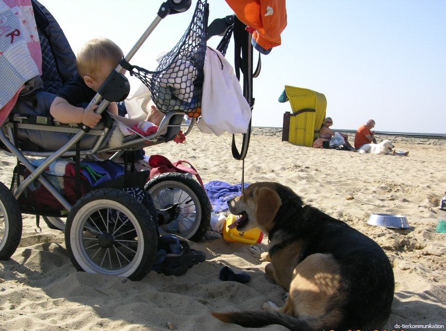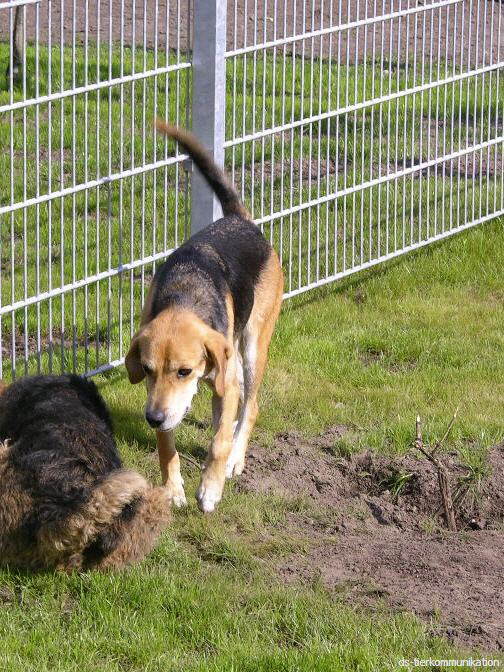In den nächsten Tagen habe ich mein neues Zuhause und seine Umgebung immer besser kennengelernt. Und natürlich auch die deutsche Sprache. "Bert" hört sich überall gleich an, das war nicht schwierig, "Sitz" habe ich mit einem Leckerli gelernt, "Platz" mache ich nur, wenn ich dafür Streicheleinheiten bekomme, "aus" oder "nein" hört sich gefährlich an, das lasse ich lieber und wenn unsere Mami sagt: "Jetzt reicht es, ab auf den Platz", dann ist es auch besser, dass wir Ruhe geben. Außerdem kann ich schon verstehen, was "ausziehen" bedeutet, nämlich still stehen und warten bis die Leine ab ist, "vor die Tür"- das ist ja wohl allen klar, "einsteigen" - hops ins Auto, "schlafen gehen" - nun ist Ruhe im Haus, "bleib" kenne ich auch schon und wenn Mami sagt: "Ich gehe Beute holen", müssen wir allein zuhause bleiben. Wenn sie dann wiederkommt, bringt sie tatsächlich Beute mit. Wie sie das nur immer schafft? Mami ist die Beste.